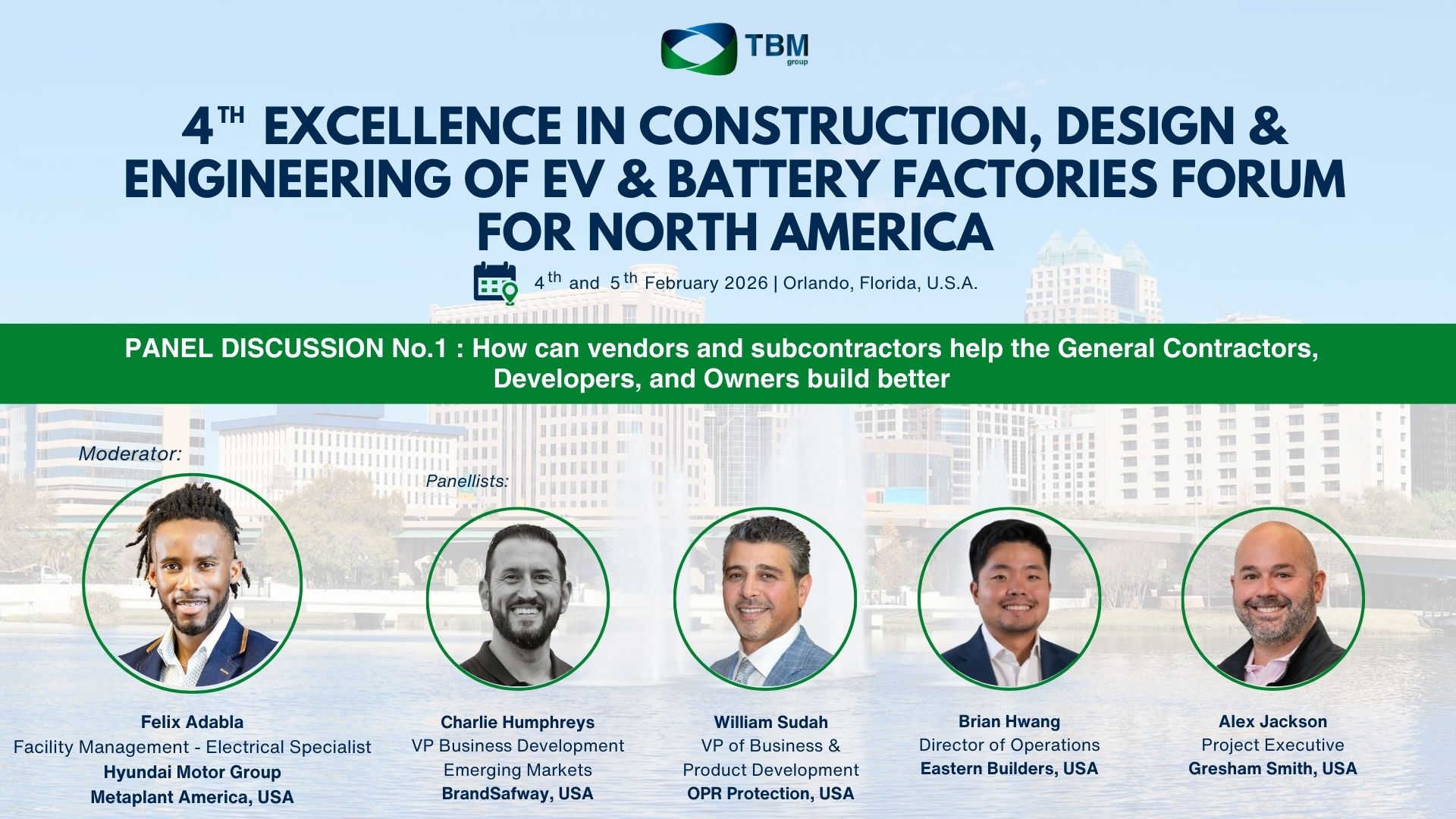 The conference itself is TBM Group’s 4th North American edition of what has been one of the most popular tailor-made conferences, fully dedicated to construction, design and engineering of the North American battery giga factories. It is an event that brings together professionals and industry experts from the Global Battery and construction industry, including: EV and battery manufacturers, general contractors and subcontractors, engineering and design companies, process equipment manufacturers, various solution providers and regulatory bodies.