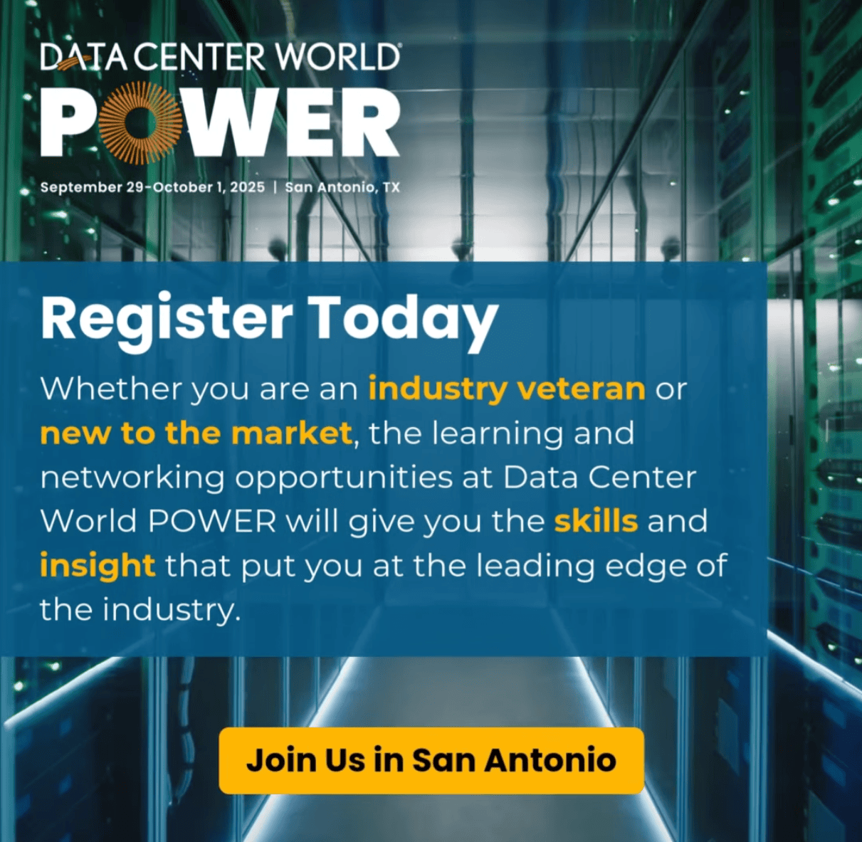 Data Center World Power Conference Sept 29-Oct 1 – San Antonio